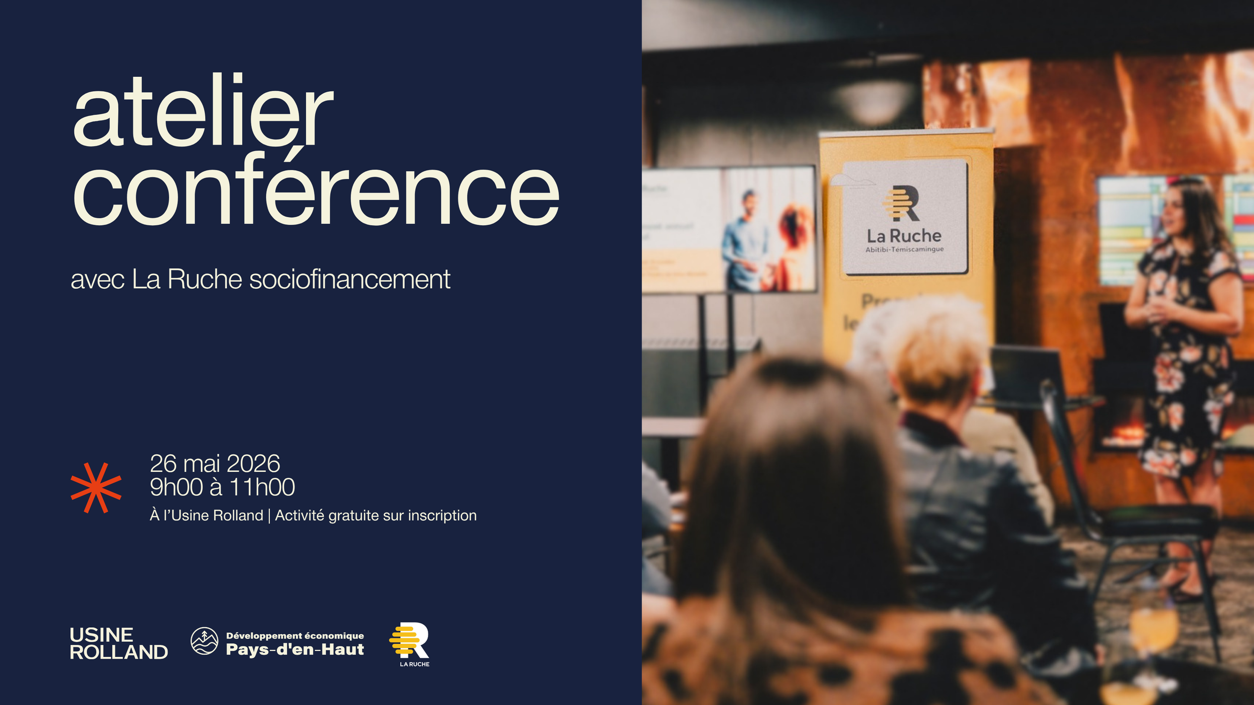 Ce printemps, l’Usine Rolland accueille le Développement Économique de la MRC des Pays-d’en-Haut pour une série d’ateliers et de rencontres destinés aux entrepreneurs, aux porteurs de projets et aux artistes qui souhaitent faire avancer leurs idées.